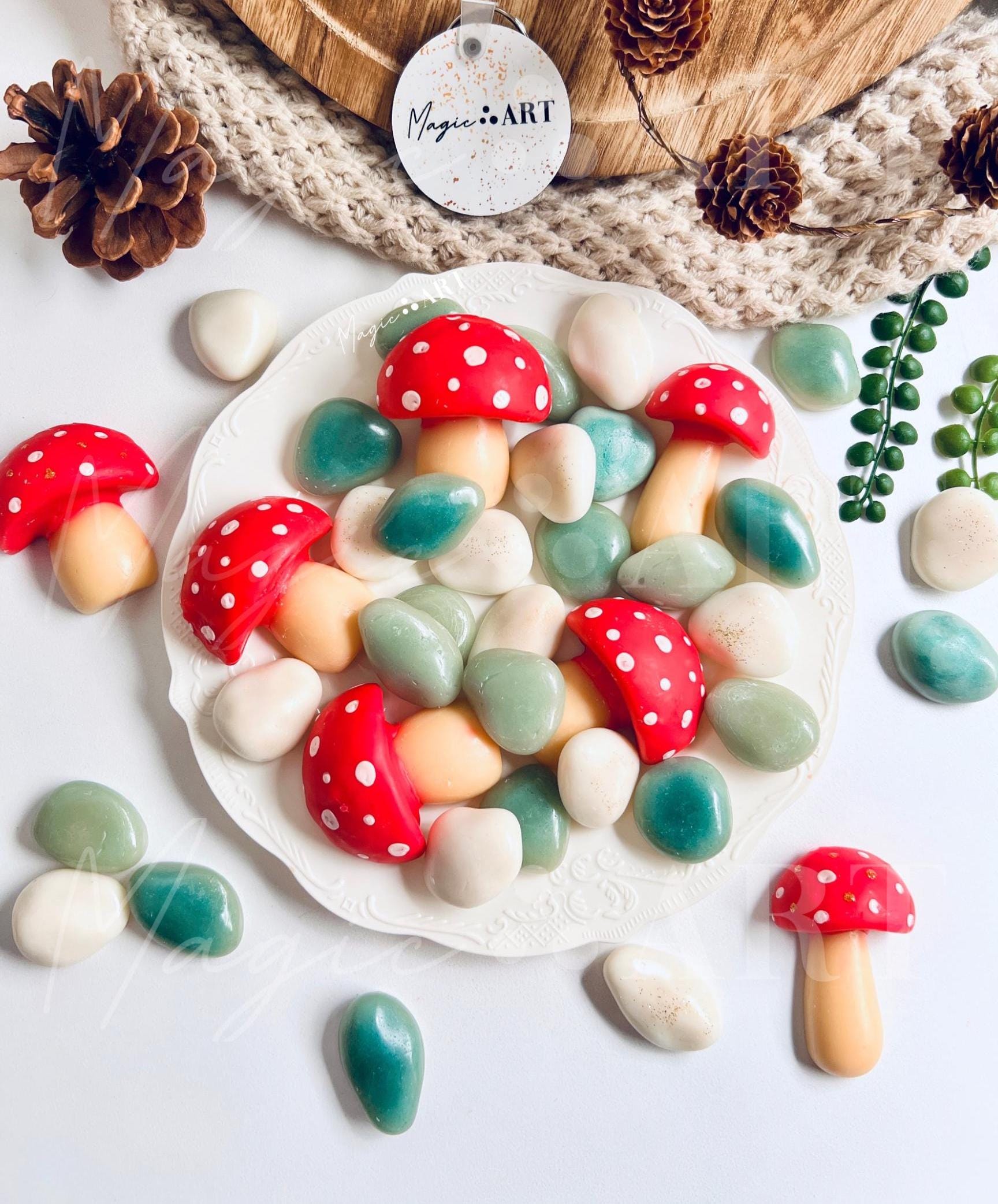 Step into an enchanted realm with our Fairy Forest Wax Melts! These adorable mushroom and river rock-shaped melts are crafted to transport you to a magical, woodland hideaway. Unwind with the whimsical scent of bamboo and amber, layered over earthy notes of cedar and pine, and finished with a touch of sweetness from vanilla and brown sugar. Made with a premium soy/paraffin wax blend, these melts are measured by weight (4oz) to ensure a strong, long-lasting fragrance.