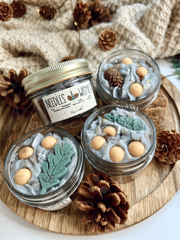 Needles & Wishes candles have top notes of pine, sandalwood and a touch of vanilla and berries. These candles bring all the ambiance of Christmas and Winter Season!