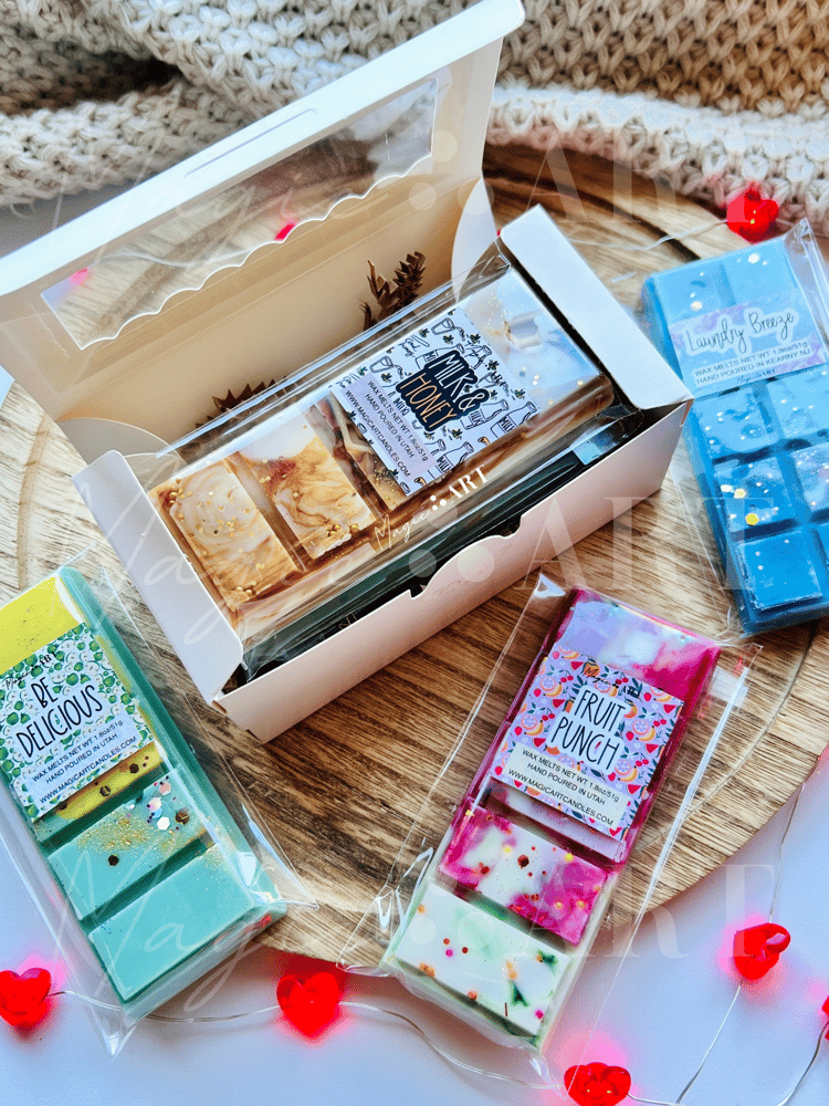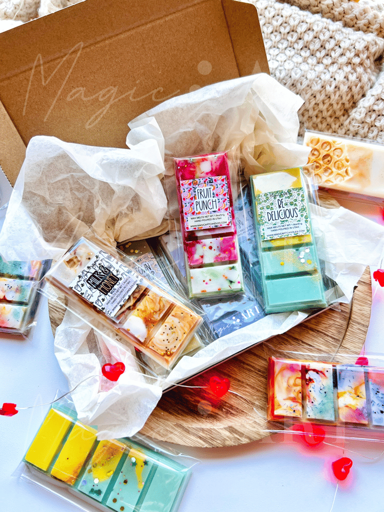 The "Surprise Me" Box (Best Value!): this box includes 6 random snap bars for a special discounted price. Your box will have a mix of scents, some from our main list, plus exclusive mystery fragrances not found in the shop! (Note: scents for this specific box are chosen by us and cannot be requested).