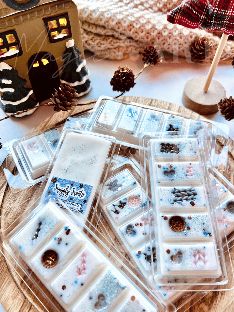 Wrap yourself in the comforting scent of Snuggly Sweater wax melts, soft, fresh, and perfectly cozy. This soothing blend captures the feeling of your favorite knit on a crisp fall morning, with cool notes of eucalyptus and juniper layered over gentle woods and a whisper of musk. Clean, calming, and effortlessly comforting, it’s the perfect scent to make any space feel warm and inviting. Handcrafted with our premium soy/paraffin wax blend, each 2oz snap bar is a cozy classic you’ll reach for all season long.